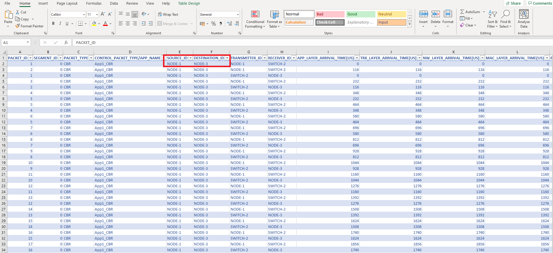 Step 3: Filter the Source ID and Destination ID to calculate the delivery ratio.